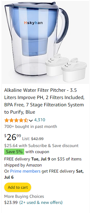 Take this image on the right for example. People are about the capacity, filters included and stages of filters. Looks great at first. But when you look at the competitors that sell 1,000+ units, they emphasize capacity in # of cup terms, describe the filtration for taste / toxins, no one has mentioned pH (nor have they mentioned pH in product listing comments).